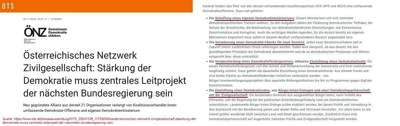 Was bleibt ist die Antwort auf die Frage, wie die Gemeinschaft der Demokratiebegeisterten so stark wird, dass politische Parteien beispielsweise Forderungen, wie sie das ÖNZ bereits formuliert hat, in die politische Praxis umsetzen.